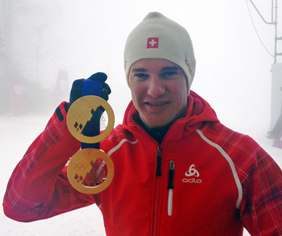スイス人のクロスカントリースキー史上初のオリンピックでの金メダルだったそうです。