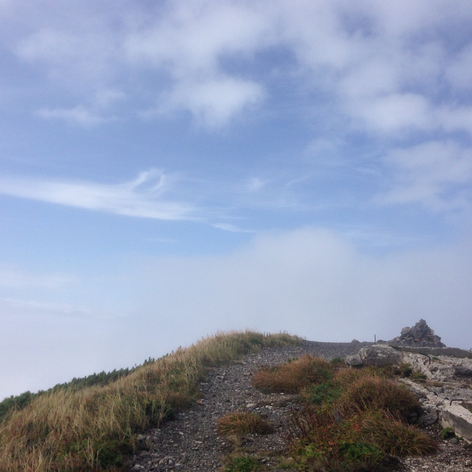 天気がよくなかった為、山頂からの景色はまっしろしろすけ。